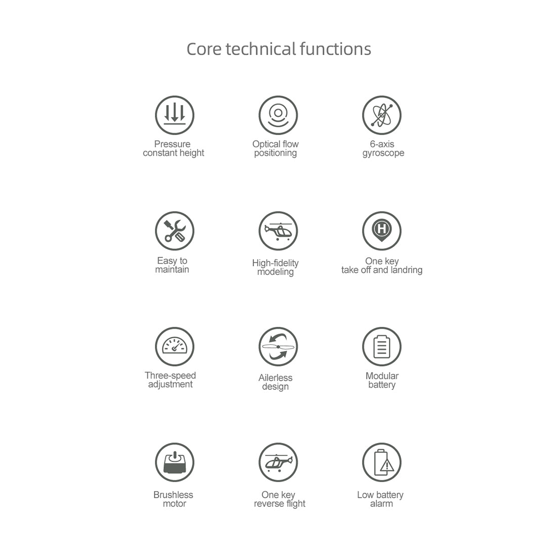 1. Aileron-free design employs aerodynamic principles in propeller design for powerful thrust and inherent stability. 6-channel variable pitch structure with 6-axis gyro ensures ultra-stable flight;
