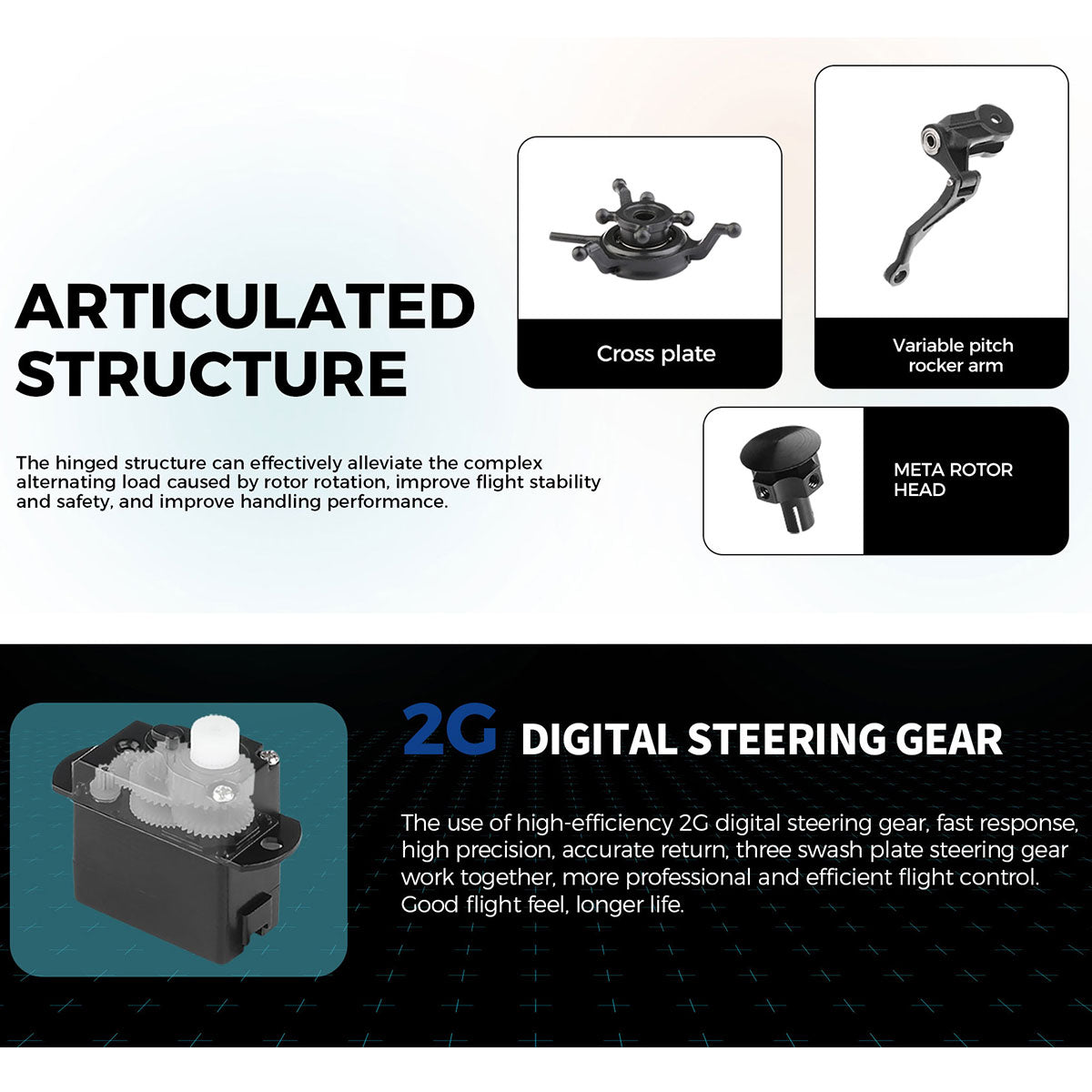 7.Using high efficiency 2G digital servo, fast response, high precision, accurate center return, make the flying feel good, longer life.
