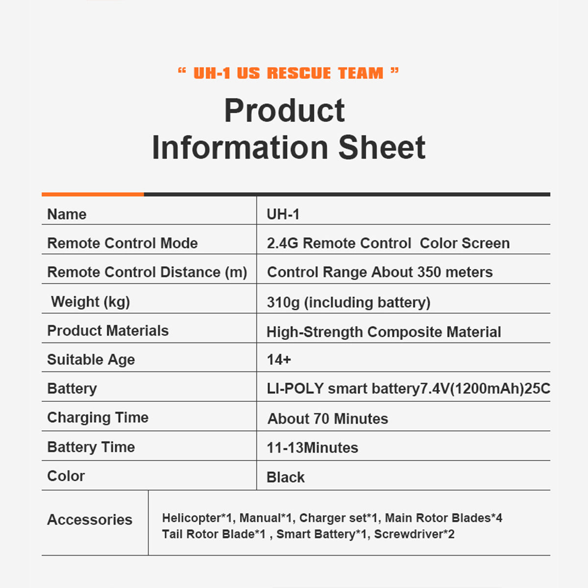 1.Scaled down according to the U.S. UH-1 helicopter, with high simulation appearance details Cool lights.