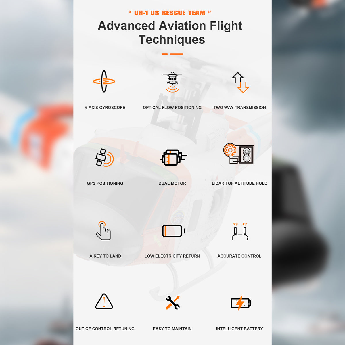 WOLFBUSH YUXIANG F07S UH-1 Huey 1/34 Scale RC Helicopter - 2.4G 6CH Brushless Direct Drive, 6G Flybarless with GPS Altitude Hold, RTF White Rescue Livery(MODE1/MODE2 Switchable)
