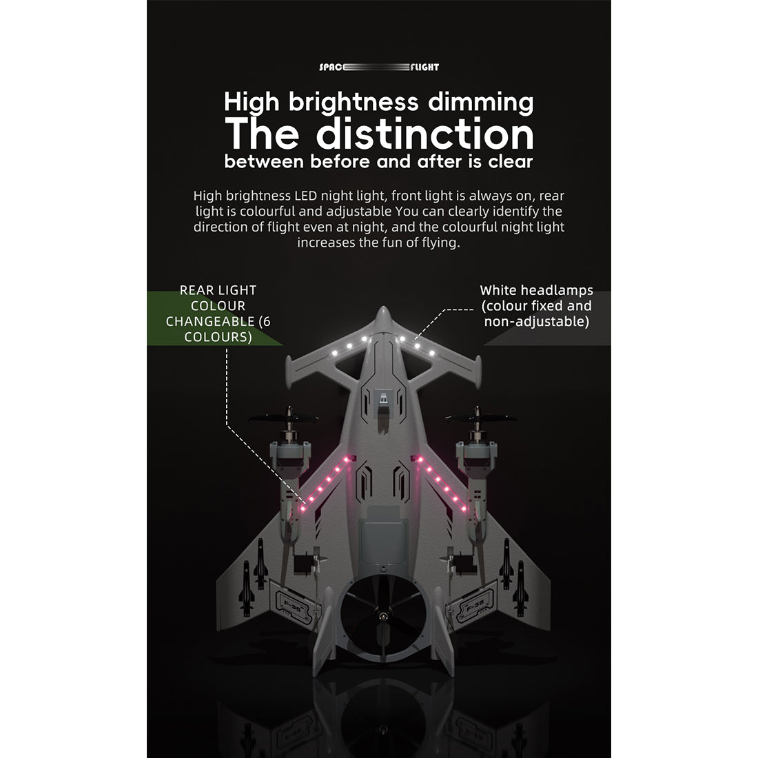 2.4G 8CH RC Stunt Airplane Model with 3 Flight Modes, VTOL & Controllable Lights (RTF)
