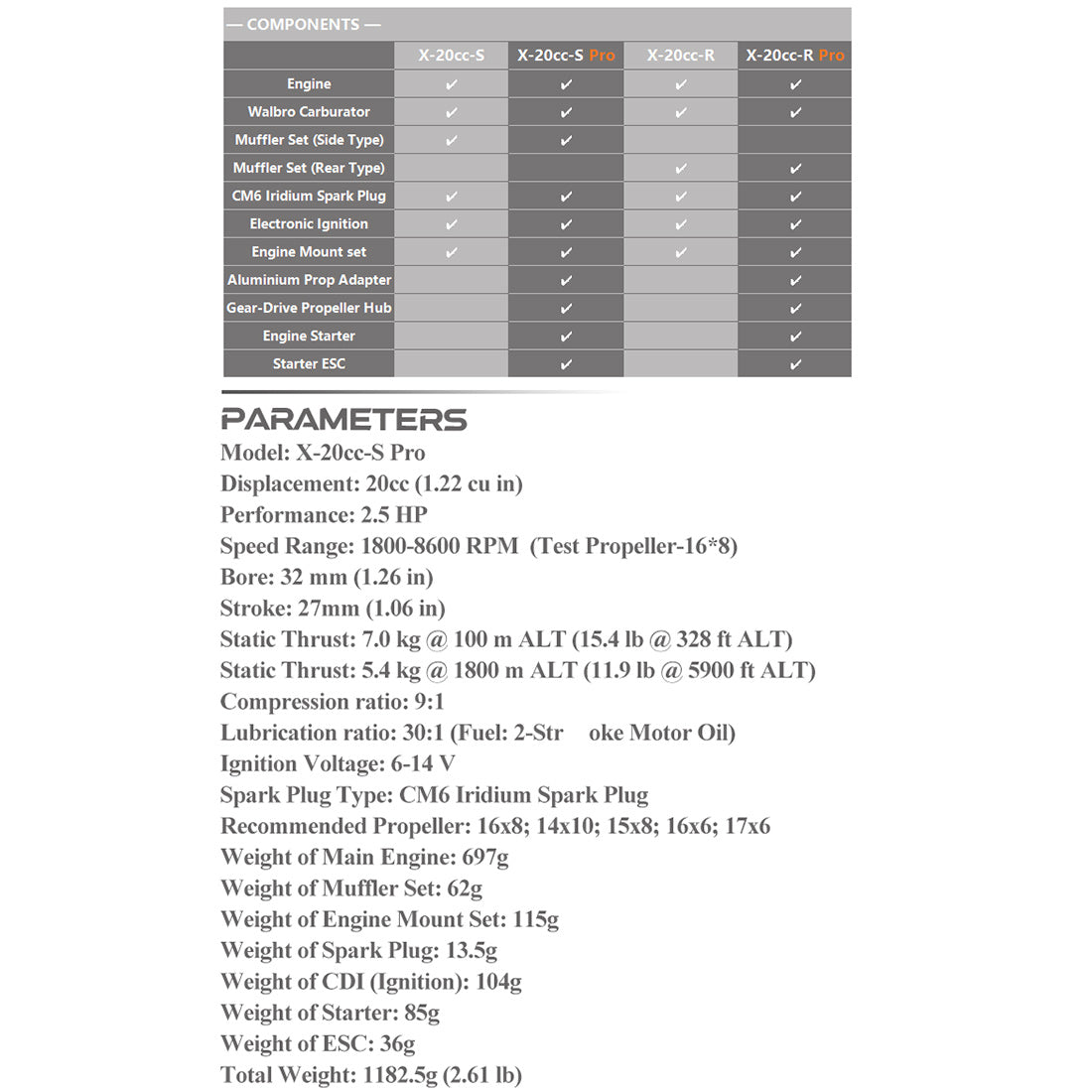 Applicable Propeller Specifications: Recommended Propeller: 16x8; 14x10; 15x8; 16x6; 17x6