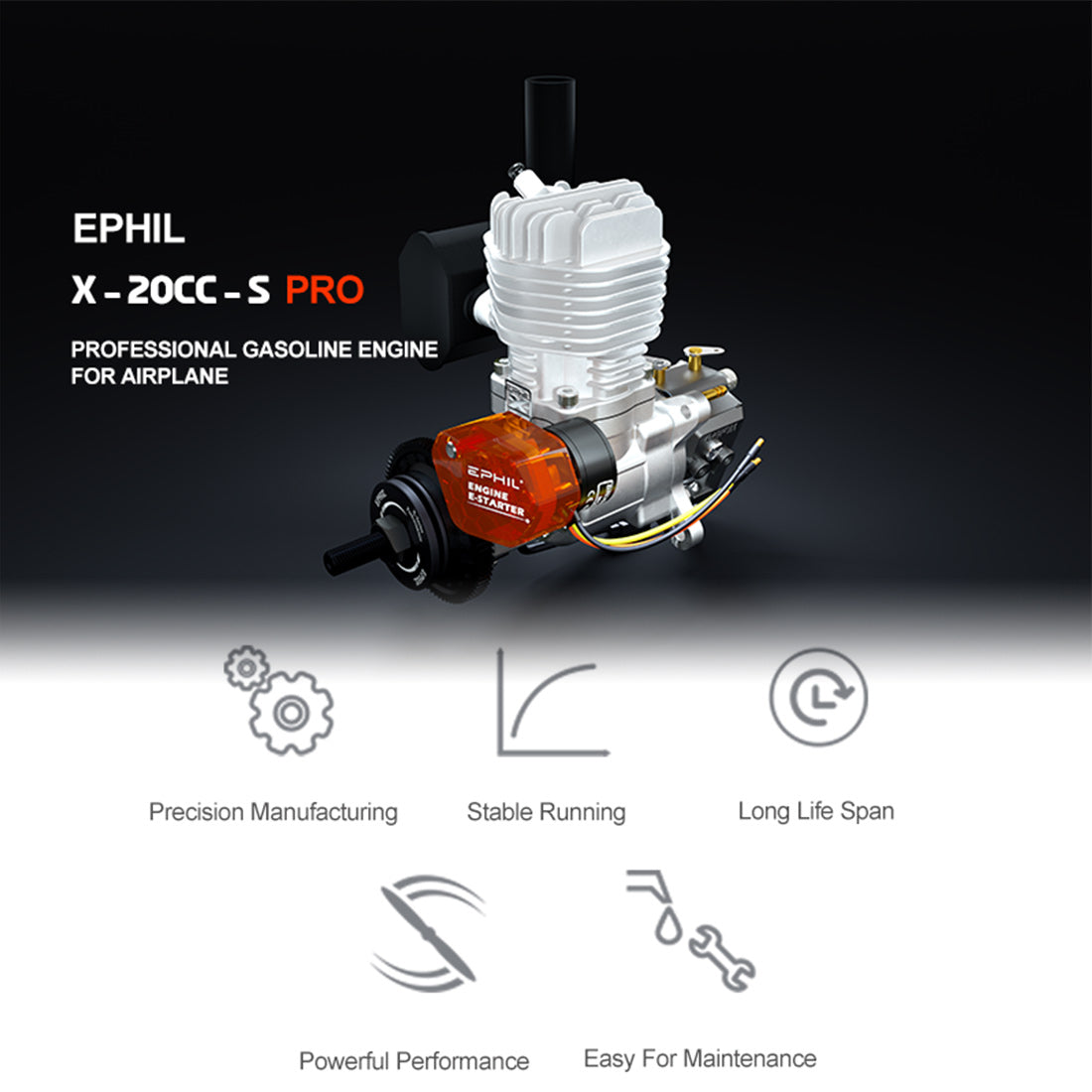 EPHIL X-20cc-S Pro Electric Startar Two-Stroke Single Cylinder Side Exhaust Gasoline Engine Model for Fixed-Wing Aircraft Models
