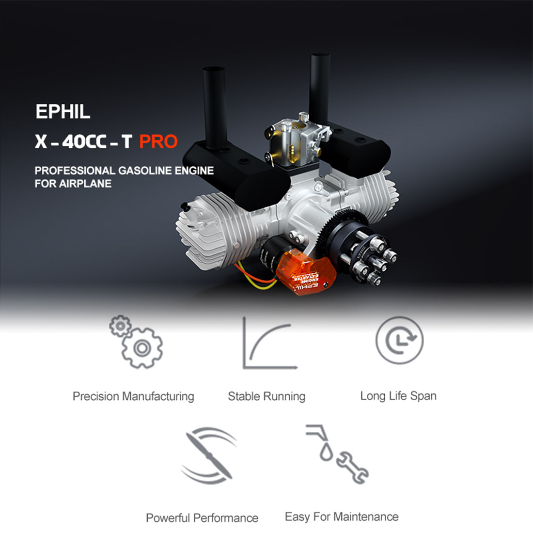 EPHIL X-40cc-T Pro Electric Starter Twin-cylinders Two-Stroke Horizontally Opposed Gasoline Engine Model for Fixed-Wing Aircraft Models