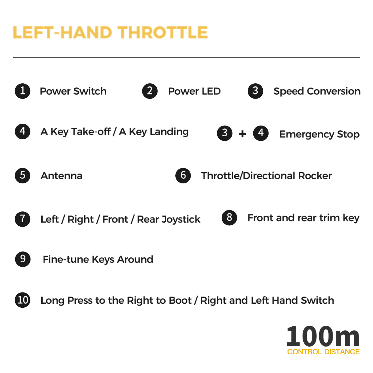 8, simple 4-channel design, using 6-axis gyroscope, with air pressure altitude function flight more stable; remote control one-key takeoff, one-key landing, up and down, forward and backward, left and right steering, left and right side flight and other functions; so that the product is more easy to maneuver, more suitable for novice operators.