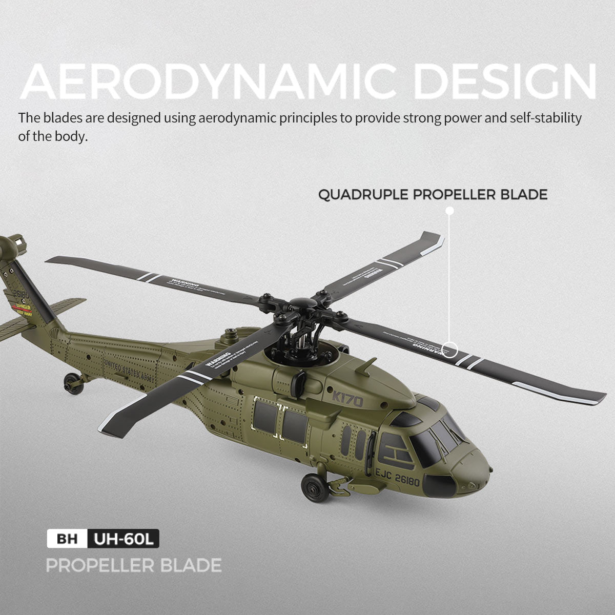 WLTOYS K170 Black Hawk UH-60L 170 Size 2.4G 4CH Flybarless RC Helicopter with Adjustable Left and right Hand Throttle (RTF Version)