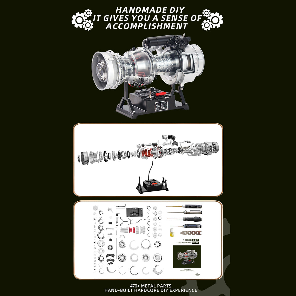 1. A masterpiece of engineering precision: the model is built with high-quality aluminum alloy and stainless steel, and is a stunning scaled-down replica of a real turboshaft engine. With more than 470 intricately machined parts, it embodies the beauty of industrial machinery and aviation technology.