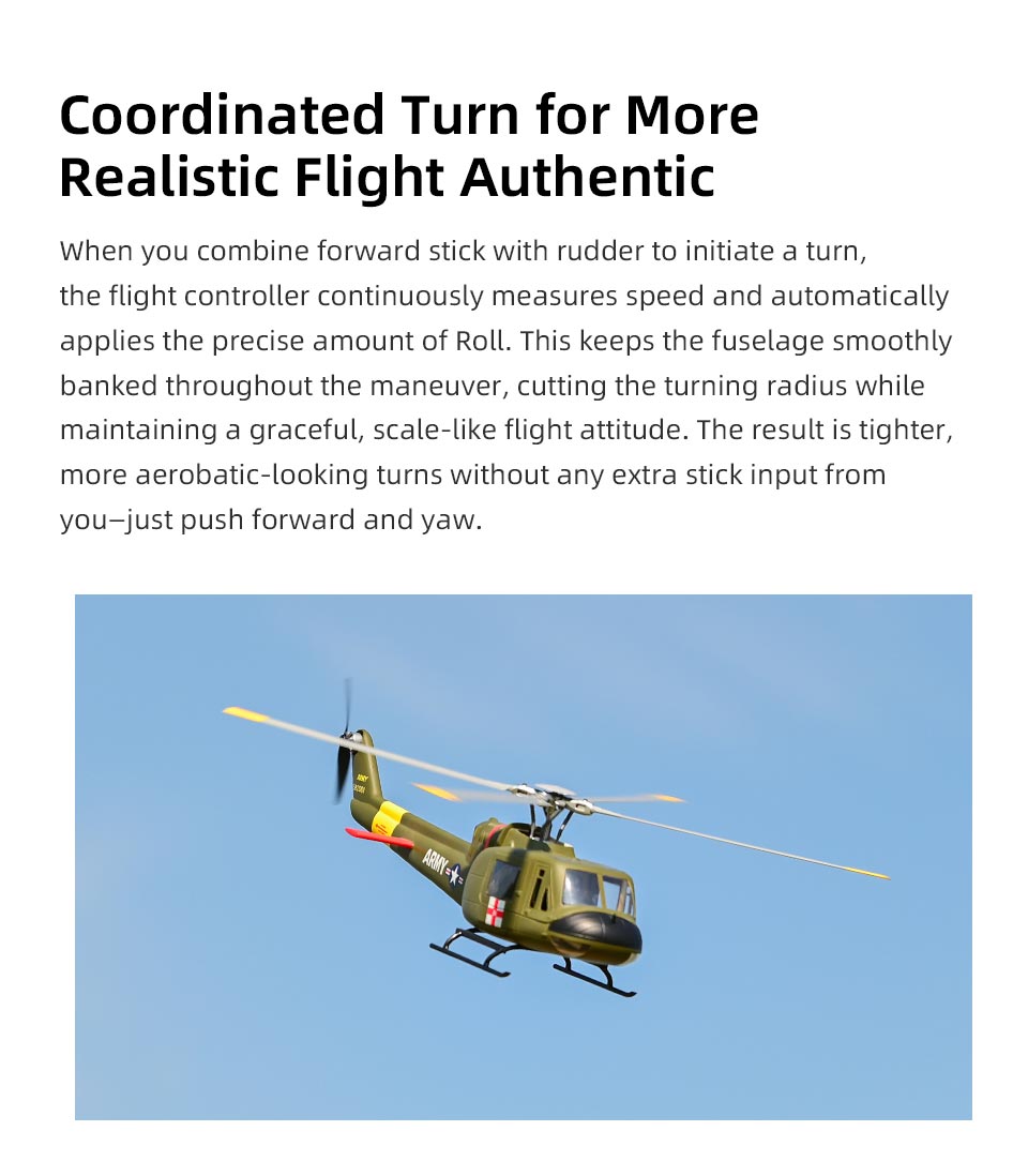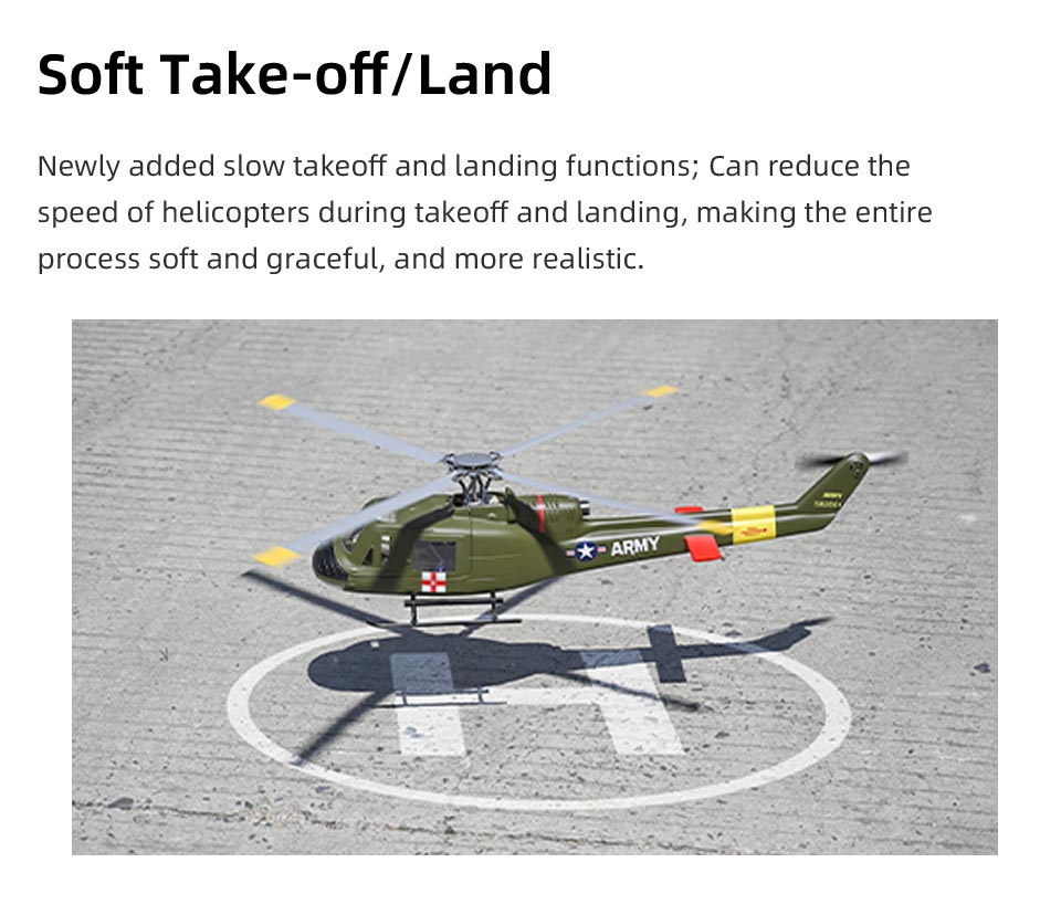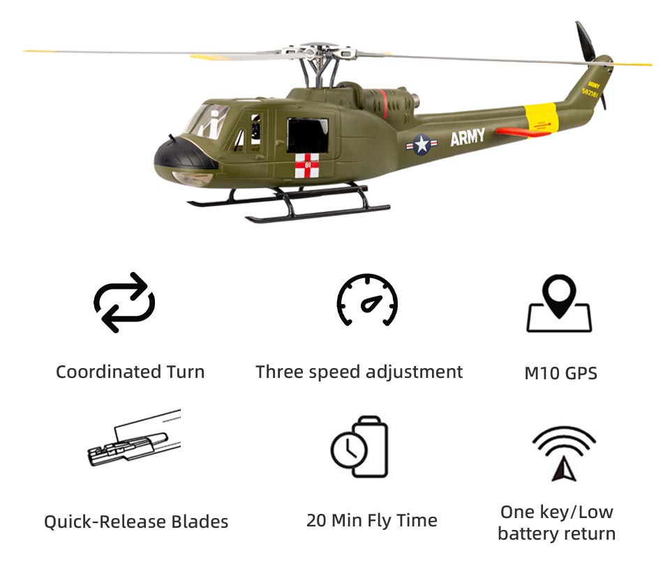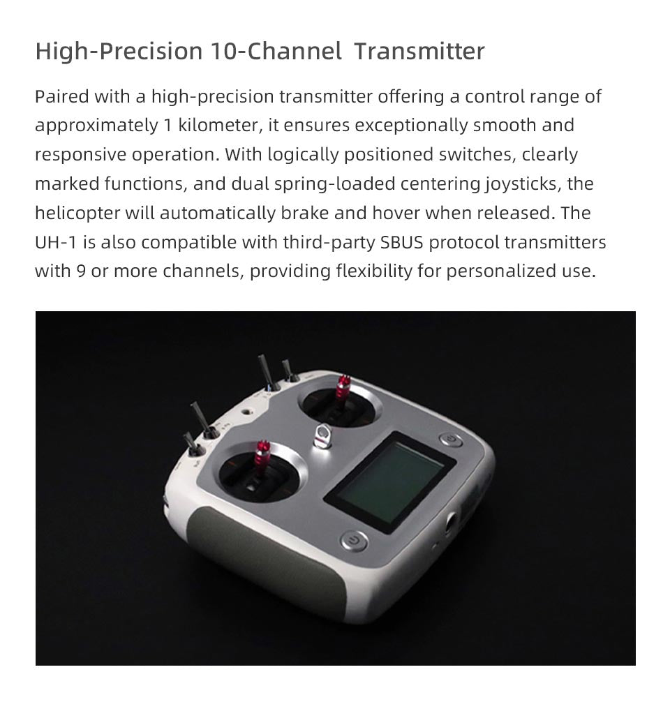 1. The 470-level UH1 Huey V3 is a six-channel remote control model that simulates a real helicopter. It is equipped with a 16V high-power motor and is easy to maintain. It is equipped with an H1 flight control with omnidirectional positioning technology and a Beidou positioning system, which can achieve forward flight/inverted flight and fixed-point hovering. The addition of intelligent return allows you to automatically return to the take-off point when the battery is out of power/the aircraft is invisible. After GPS positioning, use the 3D stunt mode and switch to GPS mode at any time to save the aircraft.
