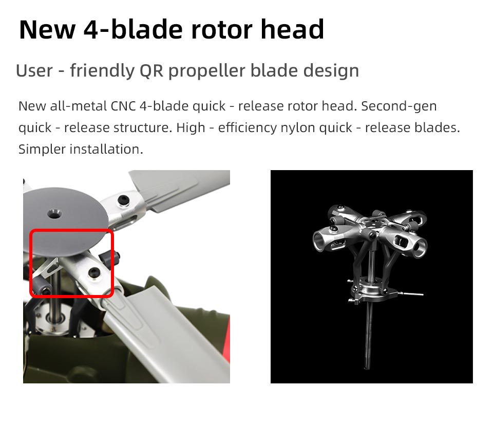 2. The same FBL rotor structure as the 700-level, high-precision FBL rotor structure can make the hand feel more rounded and heavy. Compared with the traditional 450L DFC structure, the addition of the swinging hinge makes the flight more stable. The main shaft horizontal axis size is also 470L level, which is sturdy and durable.