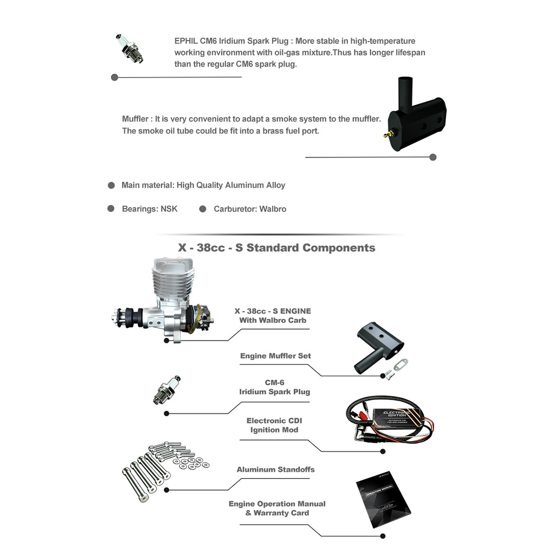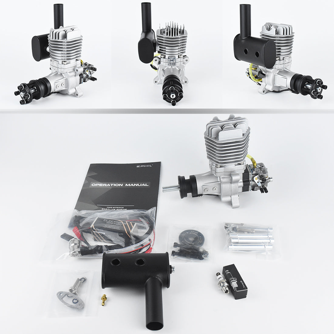 EPHIL X-38cc-S Seitlicher Auspuff Zündkerze Zweitakt-Einzylinder-Benzinmotor Modell für Starrflügelflugzeugmodelle