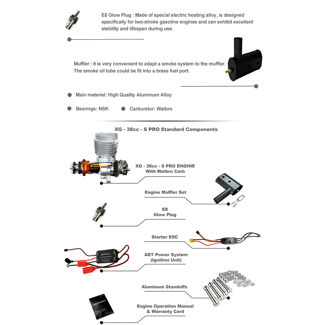EPHIL XG-38cc-S Pro Zweitakt-Einzylinder-Benzinmotor mit seitlichem Auspuff und Elektrostarter, Modell für Starrflügelflugzeugmodelle