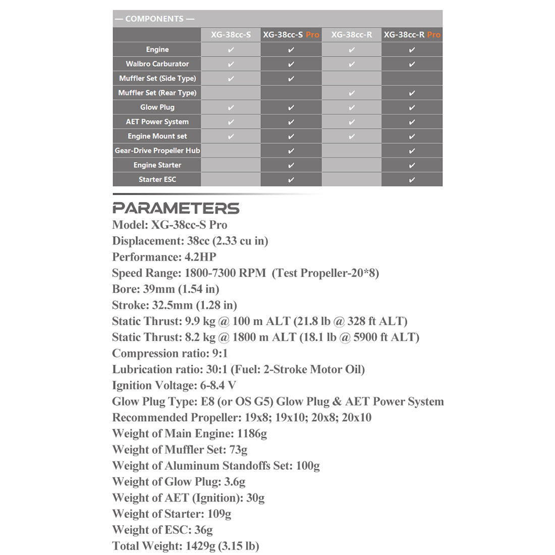 Anwendbare Propellerspezifikationen - Empfohlener Propeller: 19x8; 19x10; 20x8; 20x10