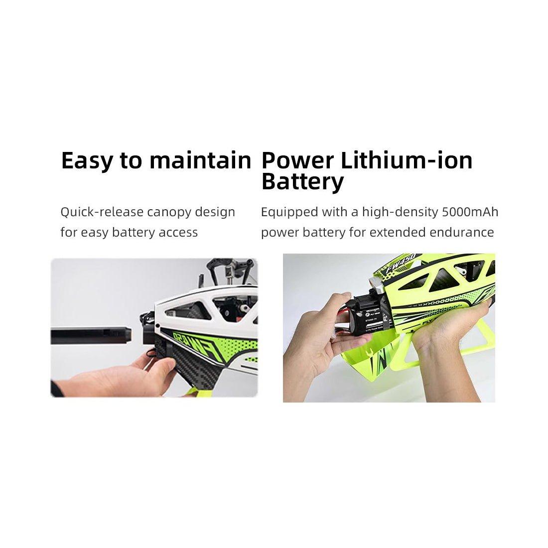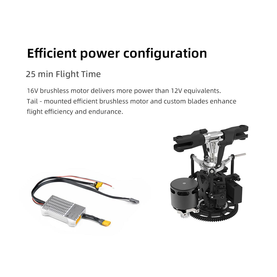 4. Der große bürstenlose Motor der Stufe 2816, der mit einer höheren Spannung von 16 V betrieben wird, hat eine höhere Leistung und einen höheren Wirkungsgrad. Gepaart mit einem 32-Bit-Dual-Processing-16-V-60-A-Ganzmetall-Helikopter-spezifischen Regler behält der Helikopter auch bei intensiven 3D-Flügen eine ultraschnelle Reaktionsfähigkeit bei. Der hervorragende Geschwindigkeitskontrolleffekt ermöglicht eine konstante Leistungsabgabe während des gesamten Flugprozesses ohne Unterbrechung. Umdrehen.