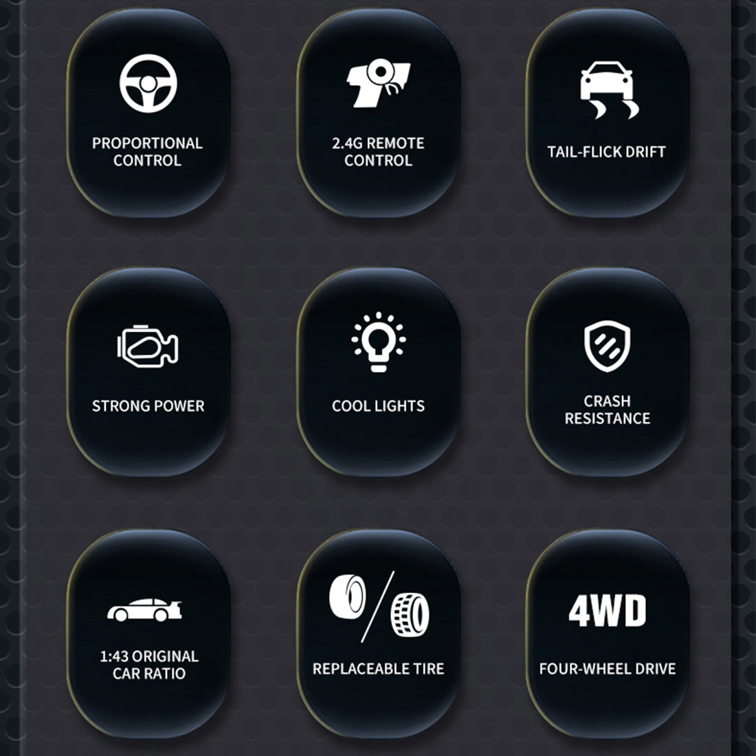 1. Hohe Simulationsform: Hat eine vollständig simulierte Autoschalenform, realistische Lackierung und einen permanenten Allradantrieb. Das einzigartige Low-Profile-Design und die eingebauten Lager minimieren den Widerstand des Autos und verbessern so die Leistung.