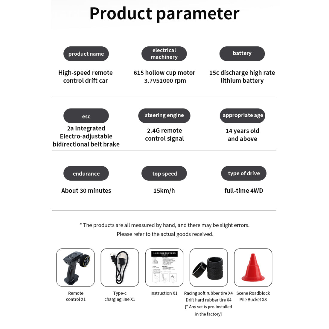 3. Hervorragendes Steuerungserlebnis: 2,4G-Vollsynchron-Fernsteuerungssystem, Heckantrieb, das Fahrzeug verfügt über Vorwärts-, Rückwärts-, Links- und Rechtskurven, Bremsen und andere vollsynchronisierte Steuerungsfunktionen. Die Geschwindigkeit des Mini-Drift-Autos kann 15 km/h erreichen, hervorragende Driftleistung, Spiel im Innen- und Außenbereich.