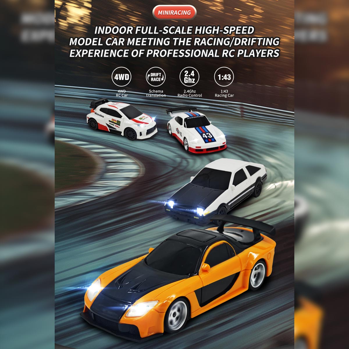 Vollproportionales Mini-Elektro-RC-Drift-Rennwagenmodell im Maßstab 1/43, 2,4 G, mit LED-Leuchten (Gyro-RTR-Version)