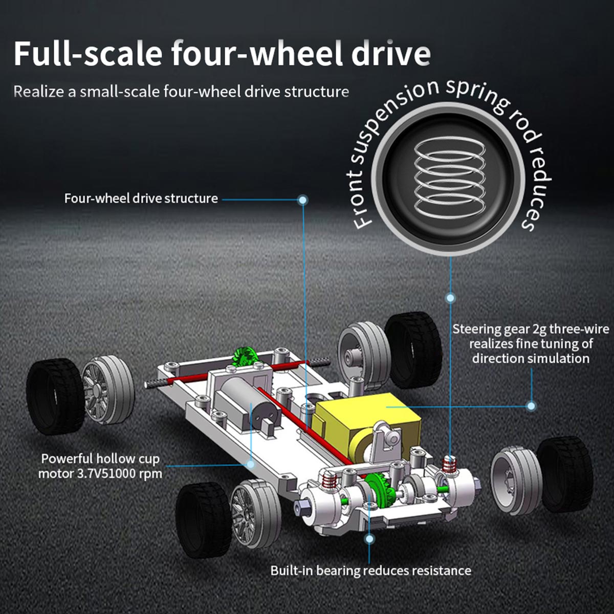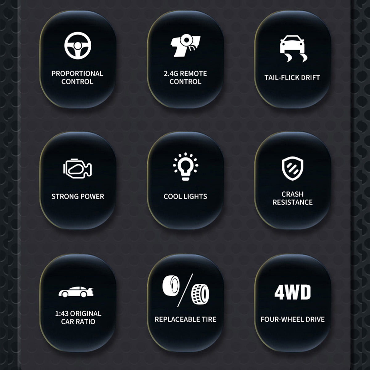 1. Hohe Simulationsform: Hat eine vollständig simulierte Autoschalenform, realistische Lackierung und einen permanenten Allradantrieb. Das einzigartige Low-Profile-Design und die eingebauten Lager minimieren den Widerstand des Autos und verbessern so die Leistung.