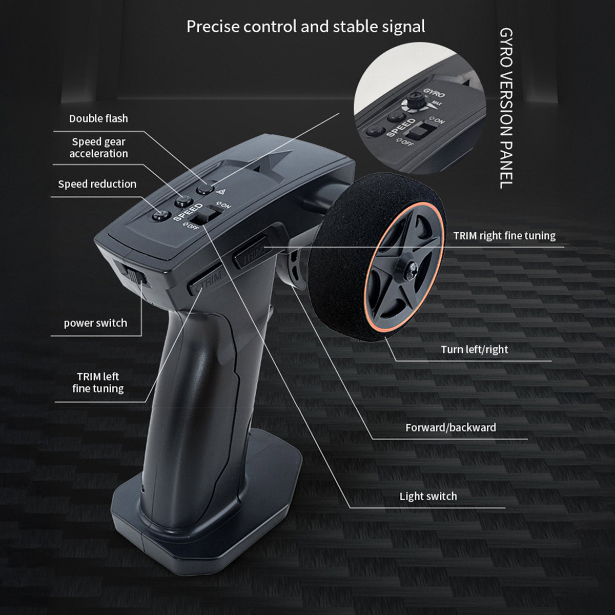 2. Starke Driftleistung, sicher und zuverlässig: einzigartiges Chassis-Design mit hoher Renn- und Driftleistung. Es verfügt über die Schutzfunktion eines Batterieüberladeschutzes und eines Überstromschutzes, um die internen elektronischen Komponenten zu schützen.