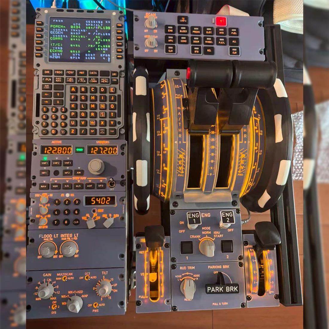 5. Upgrades over v1: Adjustable pushrod damping (includes damping adjuster), added pushrod dust covers, spoiler pre-position switch limit adjustment, more stable engine start switch, removable spoiler flap rod ends, filler plate between throttle and wing panel, black/white trim wheel adjustment assembly, and optimized throttle wing panel light transmission.