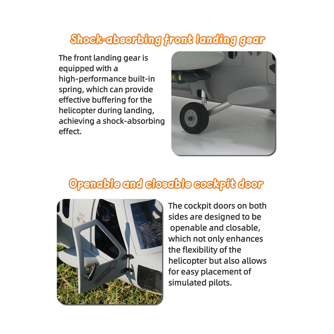 2. Highly simulated appearance details: The appearance details of the real SH-60 helicopter are restored as much as possible, and its nearly equal ratio of exhaust holes, windows, front windshield, etc. are all shown in front of your eyes, which brings an incomparable sense of realism.