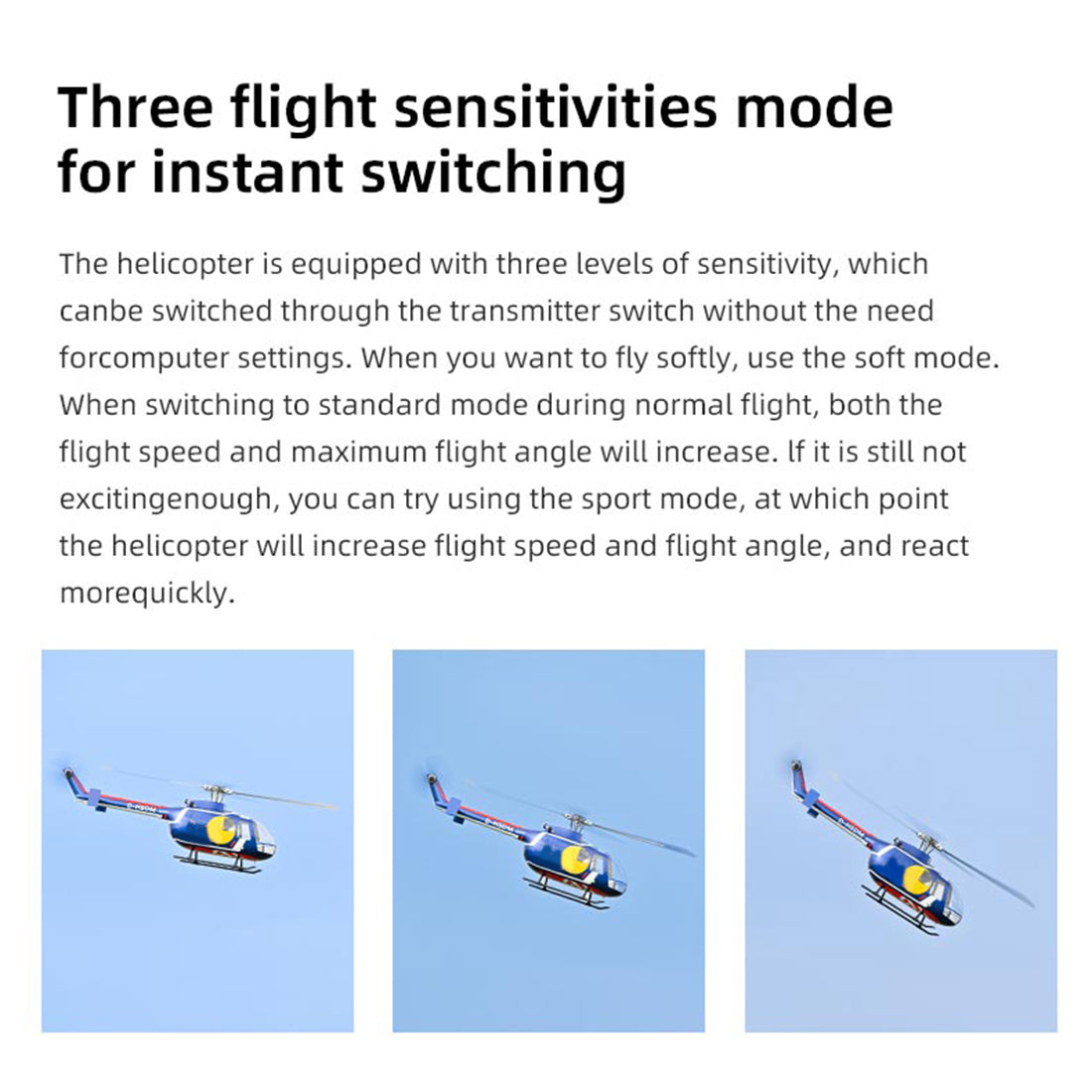 2, BO105 adopts the same FBL rotor structure as the four-propeller 700 class, the high-precision FBL rotor structure can make the feel more rounded and heavy, compared with the traditional 450L DFC structure, the addition of the swing hinge makes the flight more stable. The main shaft cross shaft size are also all 470L level, sturdy and durable.